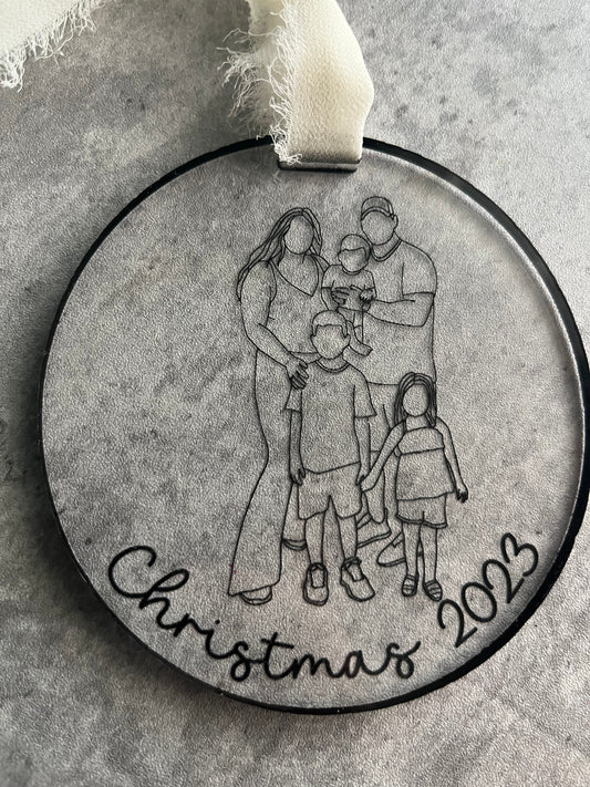 Family Merry Christmas Line Portrait Ornament