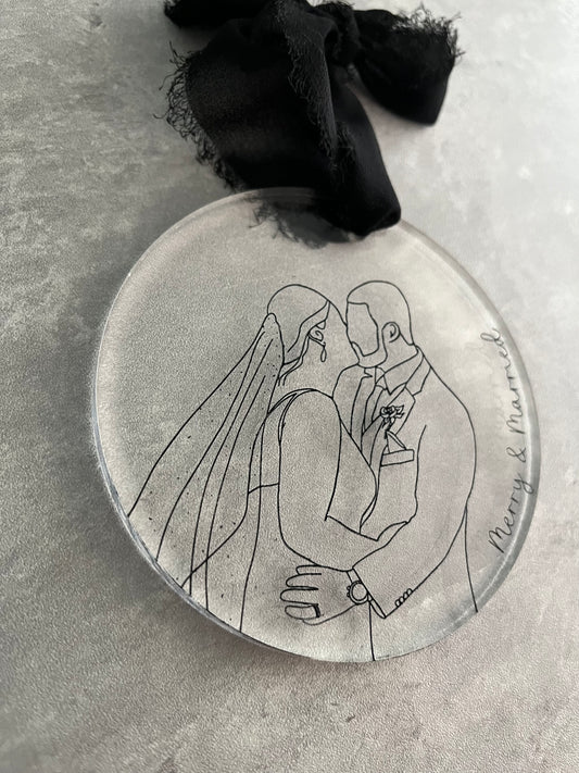 Merry & Married Line Portrait Ornament