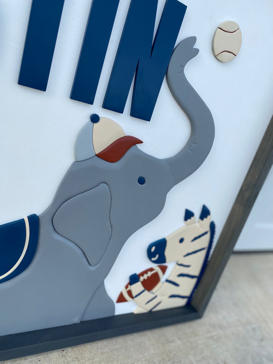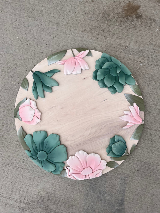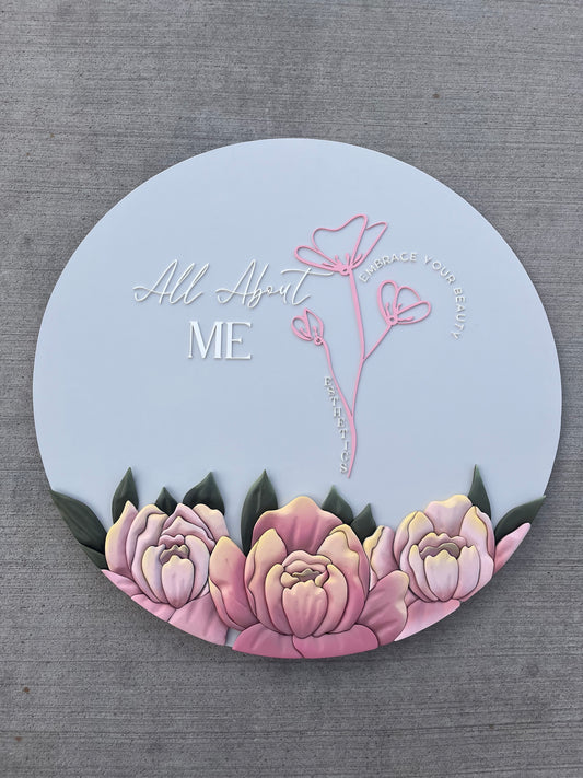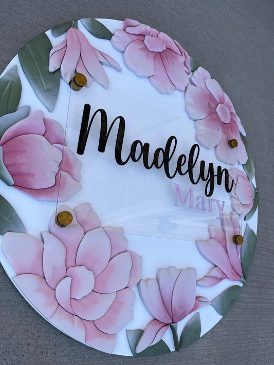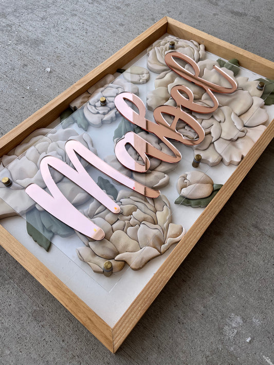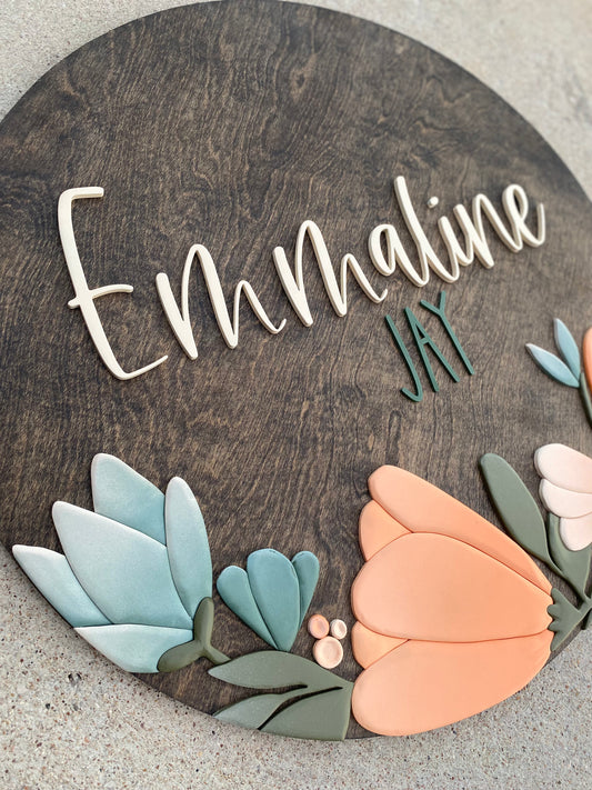 Boho Coral/Mint Ivy Floral Nursery Sign - Wood Sign