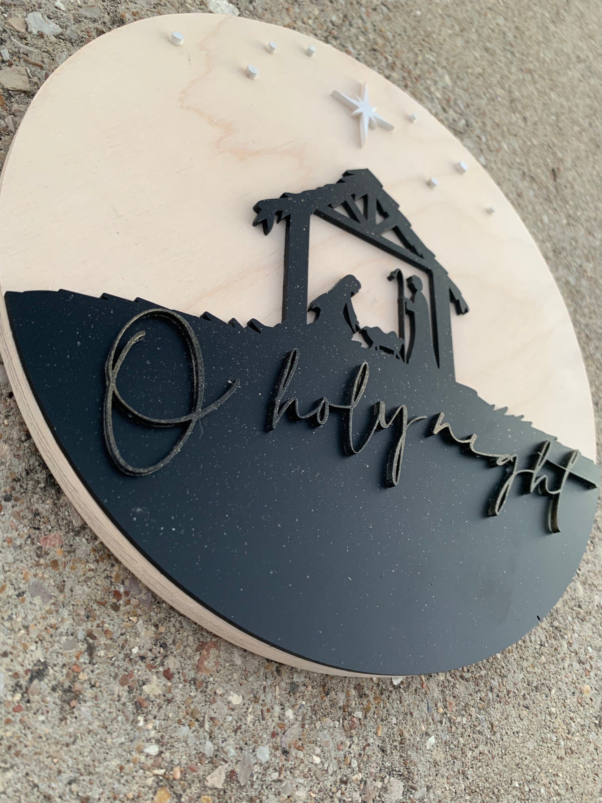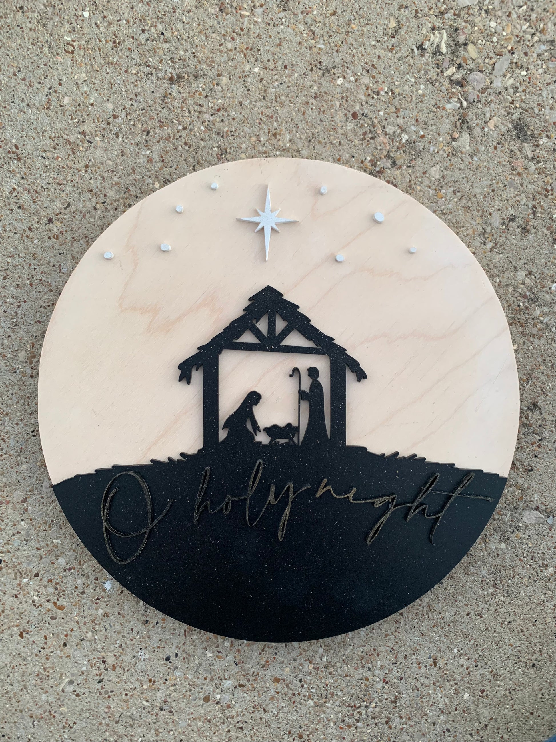 A lovely reminder of the reason for the season. This 10” round sign is perfect for decorating any space - it features an elegant nativity scene and the words "O Holy Night" to evoke the peace and joy of Christmas. Merry Christmas!